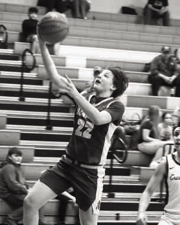 It was time for the Hamilton Tournament last week where the Huskers have seen a great deal of success the past five years since entering, having won the championship three times. This year the team entered as the three seed. Night one saw the Blue and Gold take on the purple clad South Harrison Bulldogs. Zayden Fisher got the first bucket, then Parson Stoner scored backdoor o the o ense, Lucas Burns hit, and Fisher hit a three to close the first quarter, Huskers down 15-9.