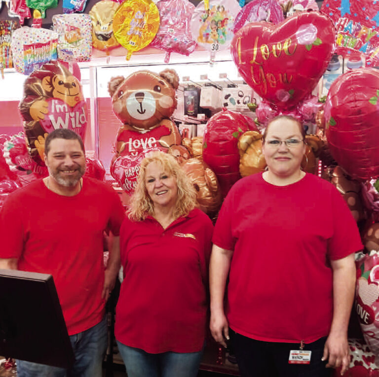 Last week, Family Dollar conducted a “balloon drive” in observance of the Valentine’s Day holiday. Mary Teichman, store manager, thought of the idea of encouraging the community to purchase balloons to send to elderly residents of Lexington. Over 100 balloons were purchased. Eighty-four balloons were delivered to the residents of Riverbend Heights Health & Rehabilitation and three balloons were sent to the residents of Bristol Manor in Lexington. The remainder of the balloons were given to the Margaret Gray Center to distribute by volunteers who deliver meals. The Family Dollar team expressed appreciation for the tremendous support given by the community. Pictured (L to R) are: John Savala, Teichman and Mandy Pitt.