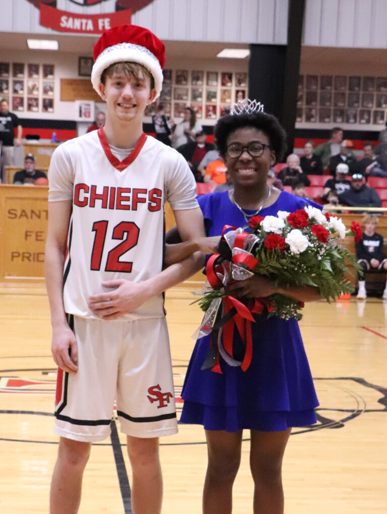 On Friday, Feb. 13, Santa Fe High School held Courtwarming during half time of the boys game against Concordia. The 2025 King and Quen were, from left: Hayden Toliver, son of Tricia Toliver of Waverly and Lucas Toliver of Blackburn; and Lillian Plattner, daughter of Darnishia Plattner of Waverly and Andrew Plattner of Waverly. For more from this event, see page 5. ( Santa Fe Times photo by Klarissa Olvera)