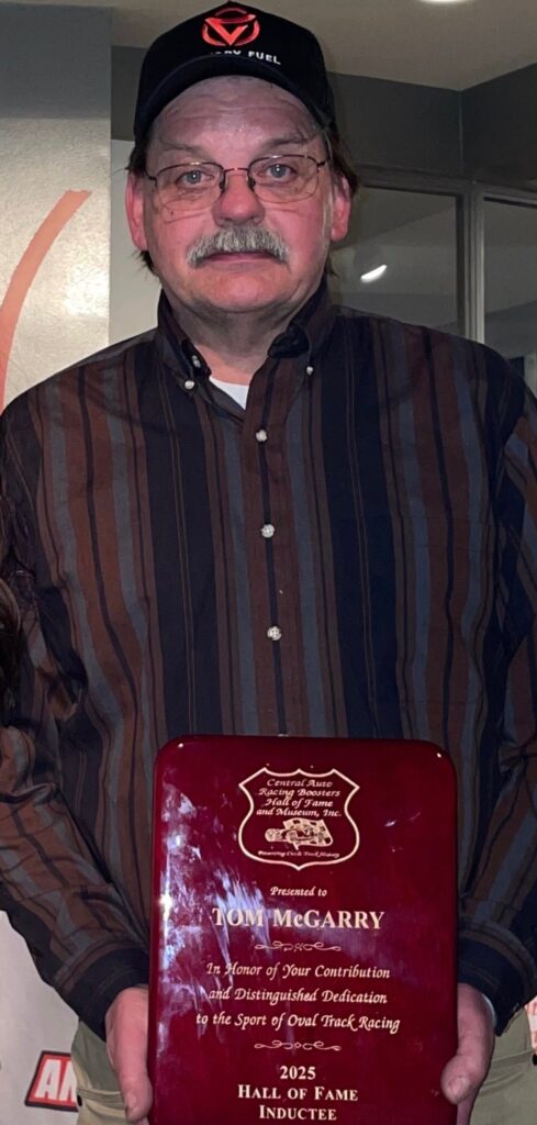 Tom was nominated by Dale McCarty, who is himself a 2015 CARB HoF inductee and who is an old friend of Speed McGarry. Tom said he’s known McCarty a long time; McCarty watched him grow up and grow into a well-recognized driver in the racing community. Nominations for this honor are reviewed by a committee that consists of all living CARB Hall of Fame inductees, the Hall of Fame board and nine additional individuals who are selected for their knowledge of racing history in Missouri and Kansas. The top eight nominees are then inducted into the HoF. The 2025 committee also inducted four Pioneers, who are outstanding individuals within the racing community who have passed.