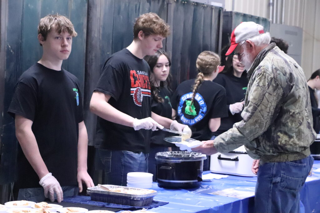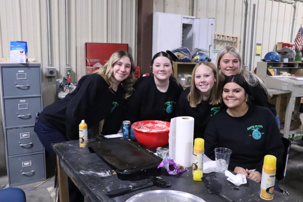 For the annual FFA Appreciation Breakfast, FFA members split into groups to prepare various parts of the meal. Here, a group is gathered to make pancakes. From left: Chesney Warner, Macy Finkeldei, Madilyn Montgomery, Alexis Hall, Avy Grado. (Santa Fe Times photo by Klarissa Olvera)Santa Fe FFA members served their annual Appreciation Breakfast on Friday morning, Feb. 20. Serving guest Rodney Roepe, from left: Ethan Meyer, Will Leabo, Carrigan Rechterman, Tynlee Koch, Abbie Gieselman. (Santa Fe Times photo by Klarissa Olvera)