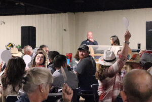 On Thursday night, March 5, members of the Alma 4-H Club met at the Alma Communication building to create an Easter craft. Younger kids made Easter buntings and older members made mini wreaths. In front, working on a bunting: Charlie Schreiman. Seated on the couch, from left: Conner Stephens, Riley Schreiman, Colstyn Bergman receiving assistance from 4-H Leader Tiffany Bergman, Logan Lovercamp, Owen Ford. See more from this event on page 5. (Santa Fe Times photo by Klarissa Olvera)