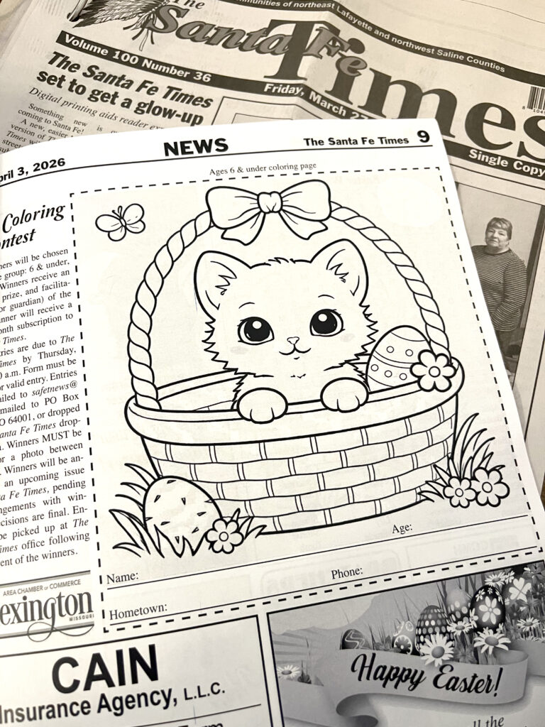 Rules: Entries are due to The Santa Fe Times by Thursday, April 9, at 10 a.m. Form must be completed for valid entry. Entries may be emailed to safetnews@gmail.com, mailed to PO Box 76, Alma MO 64001, or dropped off at The Santa Fe Times dropbox in Alma. Winners MUST be available for a photo between April 10-14. Winners will be announced in an upcoming issue of The Santa Fe Times, pending photo arrangements with winners. All decisions are final. Entries may be picked up at The Santa Fe Times office following announcement of the winners.