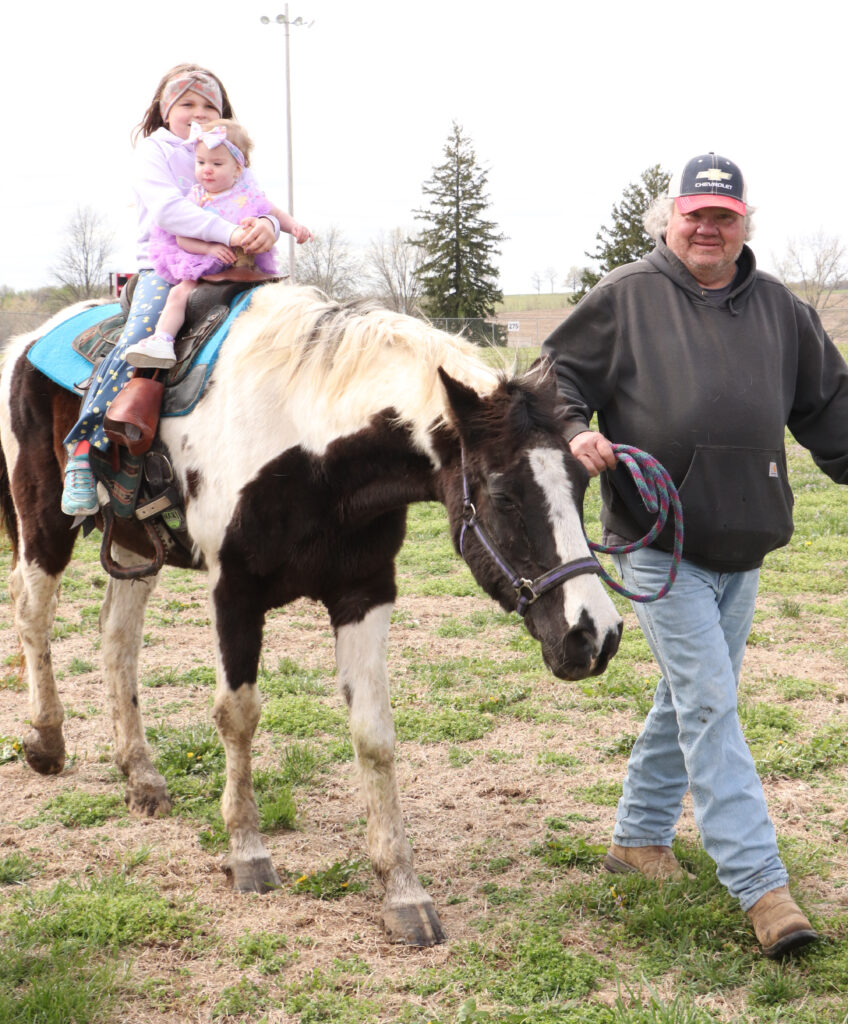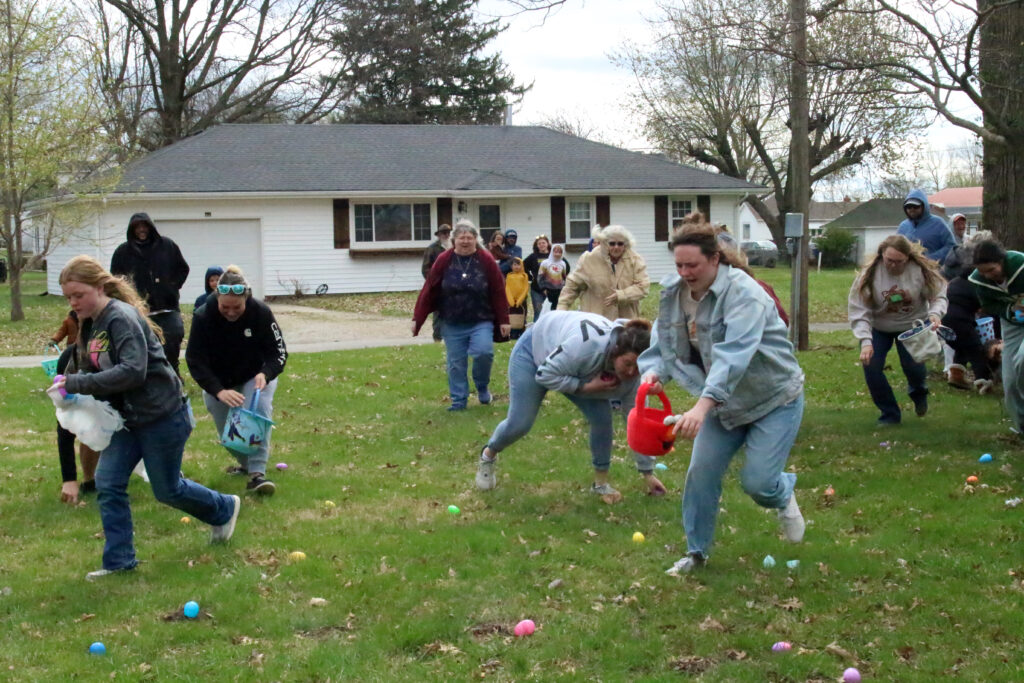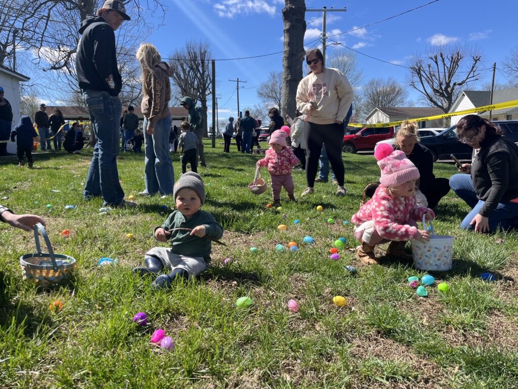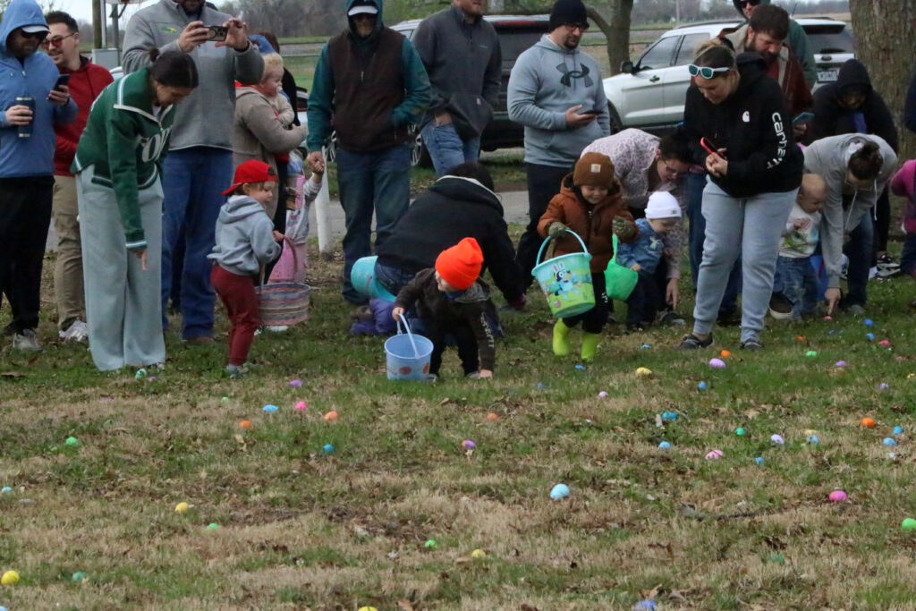 On April 4, kids were invited to take pony rides after the Easter egg hunt in Waverly. From left: Avah Edde, age 7, and Carla Jo Lightfoot, age 1.5, take a ride on a pony led by Marlin Harrison with River Trails Ranch. Avah is the daughter of Courtney & Andrew Edde of Malta Bend and Carla Jo is the daughter of Skylar Hawkins & Tim Lightfoot of Carrollton. (Santa Fe Times photo by Klarissa Olvera)From left: Bob Bishop helps granddaughter Millie Markley, age 1.5, collect eggs at the Waverly hunt while Quinnaya Bolden, age 5, and Memphis Bolden, age 2, also gather eggs from the plethora scattered in the grass at the Community Building. Millie is the daughter of Courtney & Justin Markley of Blue Springs and the granddaughter of Bob & Kim Bishop of Waverly. The Boldens are the children of Quintin Bolden & Jennifer Still of Waverly. (Santa Fe Times photo by Klarissa Olvera)From left: FFA members Logan Wilsie, Will Leabo and Carrigan Rechterman help guests at the Alma Easter egg hunt return empty eggs. (Santa Fe Times photo by Klarissa Olvera)From left: Korbin Halley, age 1.5; Karsyn Knipmeyer, age 1; and Adleigh Knipmeyer, age 3, hunt for eggs in Alma. Korbin is the son of Dallas & Morgan Halley of Unionville and the grandson of John & Daphne Zitelman of Alma. The Knipmeyers are the daughters of Austin & Katie Knipmeyer of Norborne. (SFT photo by Klarissa Olvera)As part of the Corder Community Easter Egg Hunt, approximately 300 eggs were spread out for adults to hunt. (Photo by Pat Larkin)On Saturday, April 4, the Corder Easter egg hunt had an incredible turnout with close to 200 people in attendance. Approximately 3,000 eggs were hid for children. (Photo by Pat Larkin)