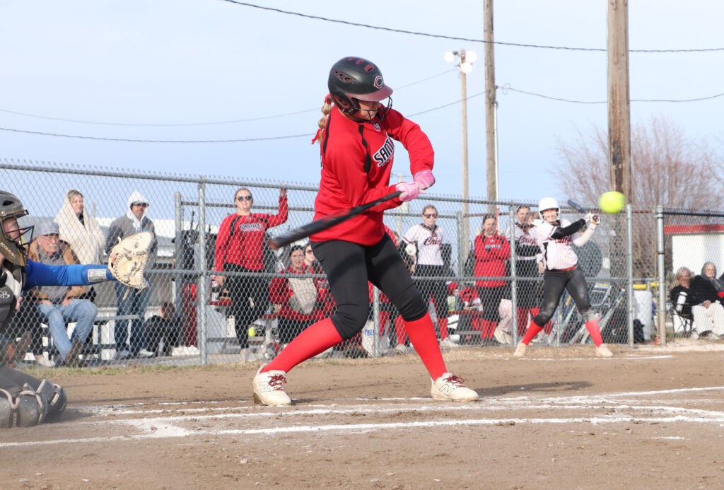 Chesney Warner with a hit during the game on March 23. (Santa Fe Times photo by Klarissa Olvera)