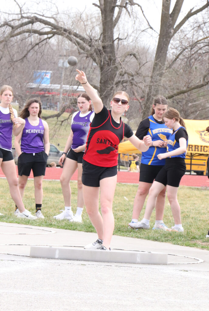 Hallie Schuster in the shotput. (Santa Fe Times photo by Klarissa Olvera)