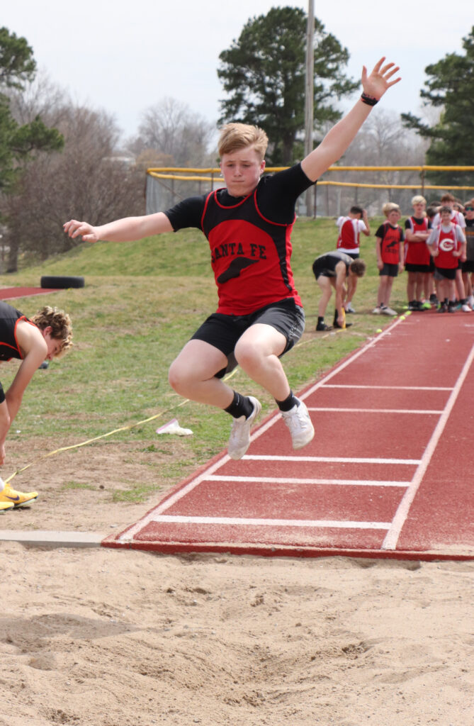 Kaden Boland in the long jump. (Santa Fe Times photo by Klarissa Olvera)